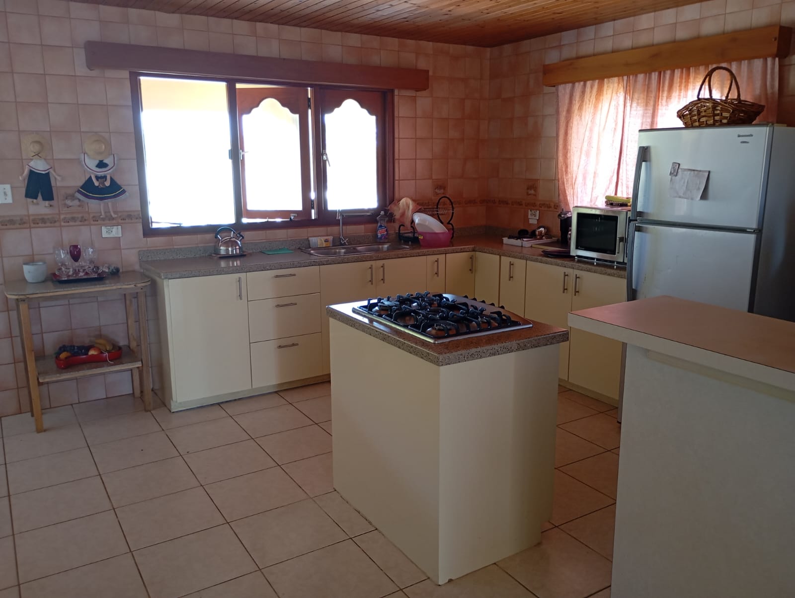 The cabinets and the top are manufactured in a factory and are from the amazing quality European brand ‘Alno’. Several rows of wall tiles have been installed above the